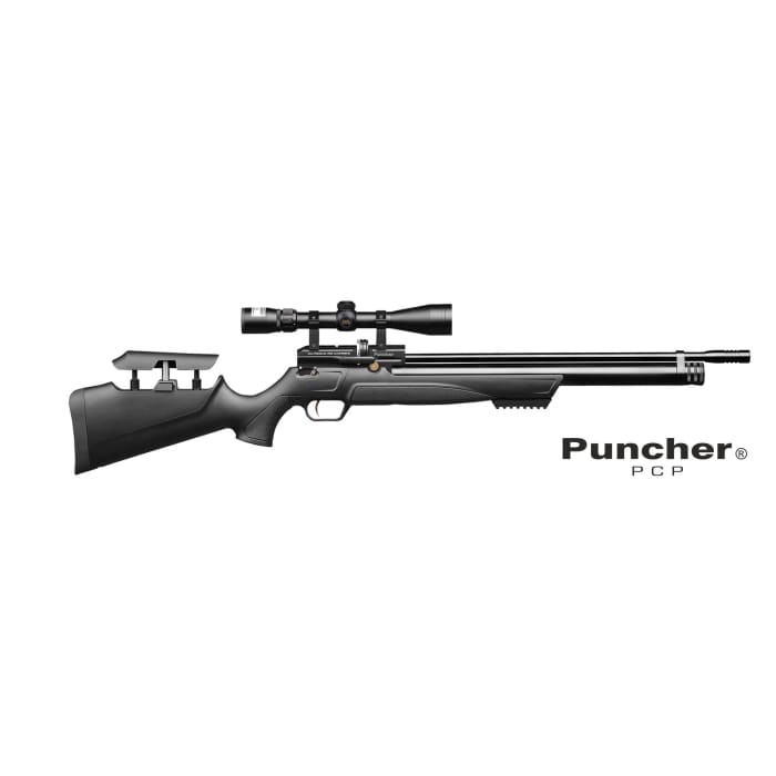 Kral Puncher S PCP in 5.5mm, Synthetic stock, side lever action 2 x 12 Shot magazines, adjustable power levels & includes a bi-pod. This new kid on the block shorty or Carbine version is a pleasure to handle and shoot.