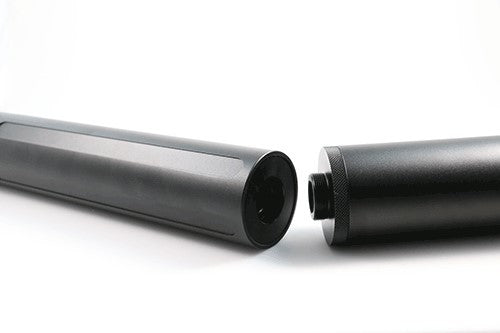 Is the 10.5 inch Emperor v3 still too loud for you? If so add this 6.5 inch expansion chamber to the rear of the Emperor to make it even quieter. This increases the air volume that gets captured inside the suppressor. Works with the latest version of the Ronin as well. If it has the grooves in the front cap, it's the latest model.