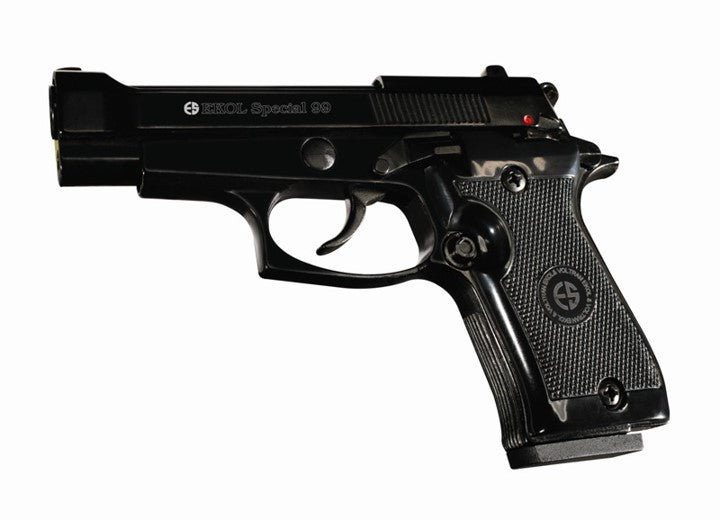 This Special 99 Black gas and blank gun is an outstanding blank firing replica of the popular mid-size 9mm semi automatic pistol and is great for defence, training or stage purposes.
