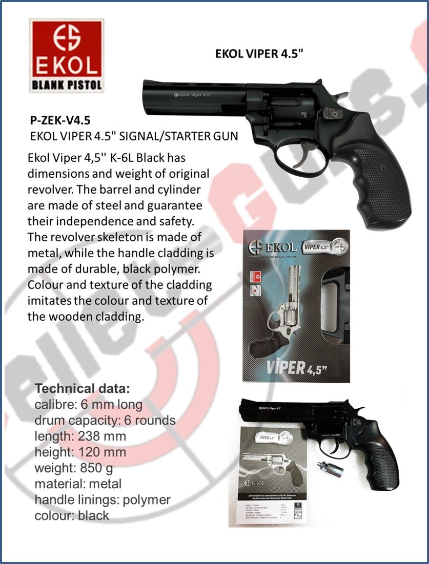 Ekol Viper 4,5'' K-6L Black has dimensions and weight of original revolver.