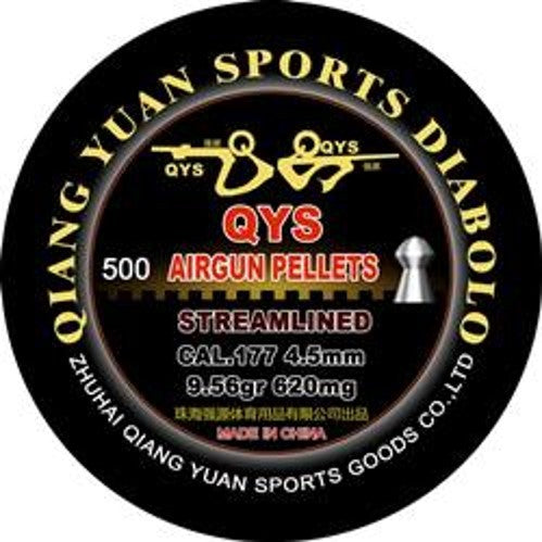 QYS AIRGUN PELLETS, STREAMLINED HEAVY, 4.5MM 9.56GRAIN 500 PER PACK