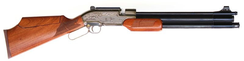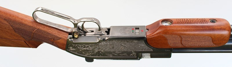 Sumatra Carbine PCP lever action Hunting air rifle with 2x6-shot magazines, adjustable cheek piece. 290cc Air capacity. Although this is the smallest in the Sumatra range, the Carbine is still more powerful than 99.9% of other brands of PCP air rifle out there. More than enough power to hunt larger animals as wel as for self defense.