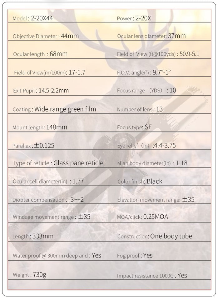T-EAGLE SCOPE, 2-20X44 IR, IMAX