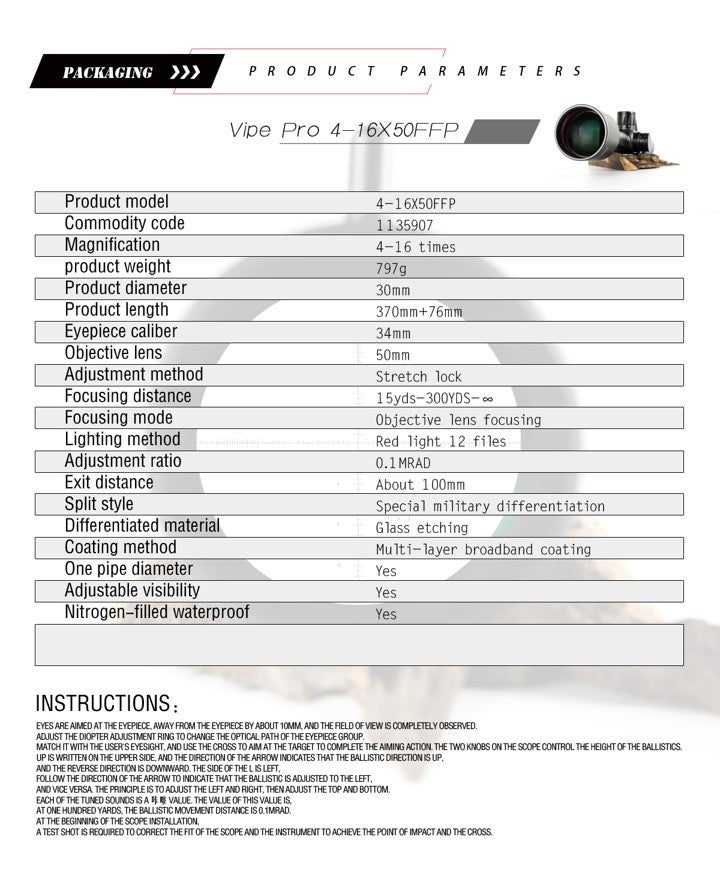 PRODUCT NAMEÂ 4-16X50FFP,VIPER