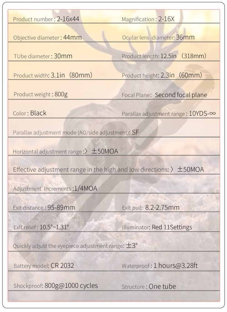 PRODUCT NAME:Â Â Â Â Â 2-16X44