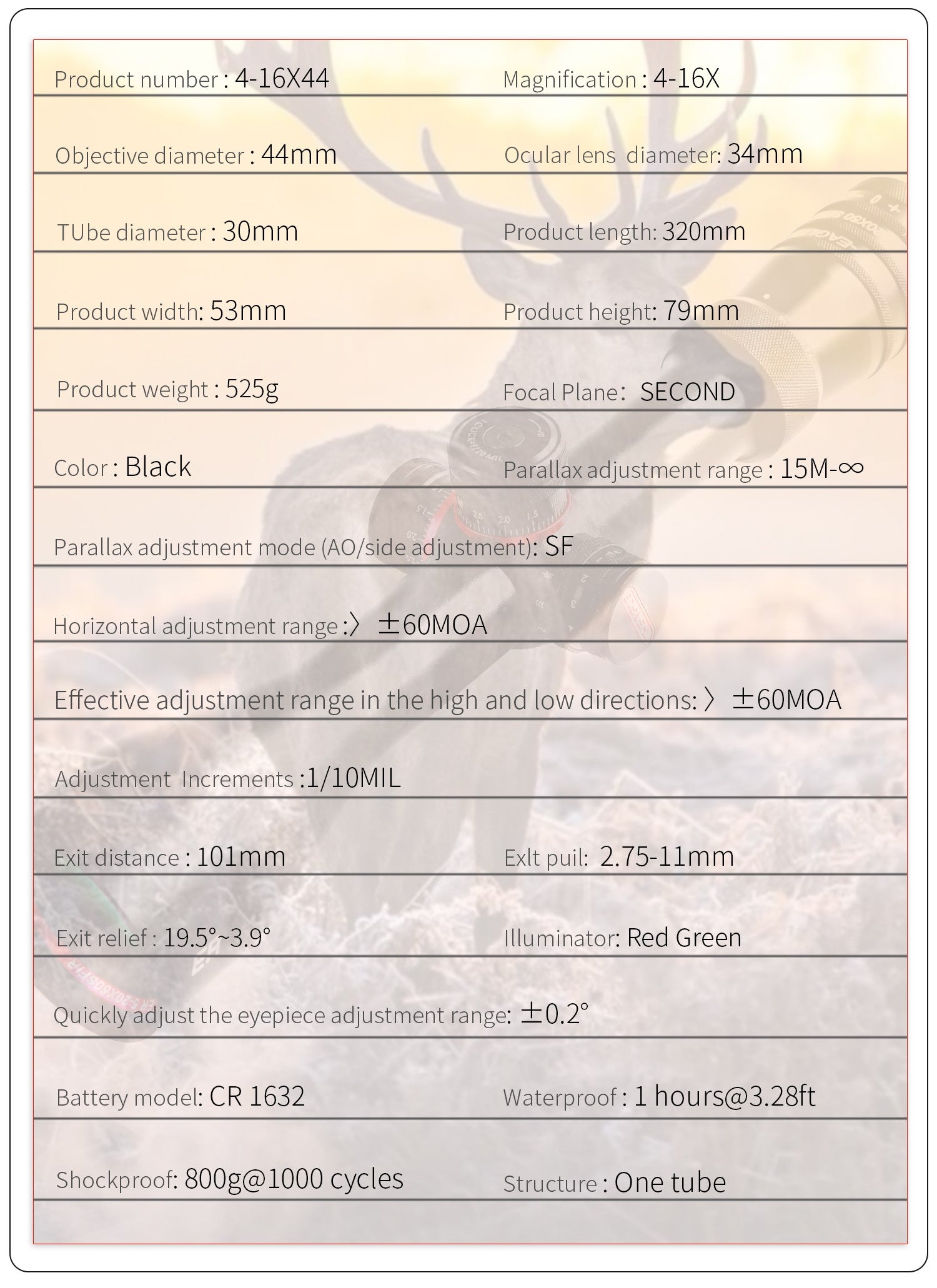 PRODUCT NAMEÂ 4-16X44FFP TUBE DIAMETERÂ Â 30MMÂ