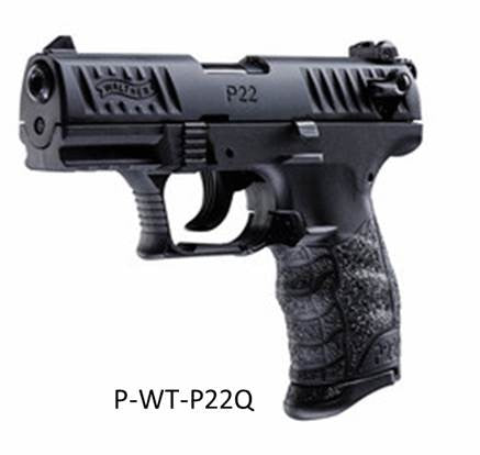 Improved version of the Walther P22, in outer design identical to the "real gun" .22 long rifle. Black Finish. The new takedown lever has been enforced with a metal inlet and is now held in place by a steel-ball. For better handling the grip of the P22Q has got the new Hi-Grip® surface.